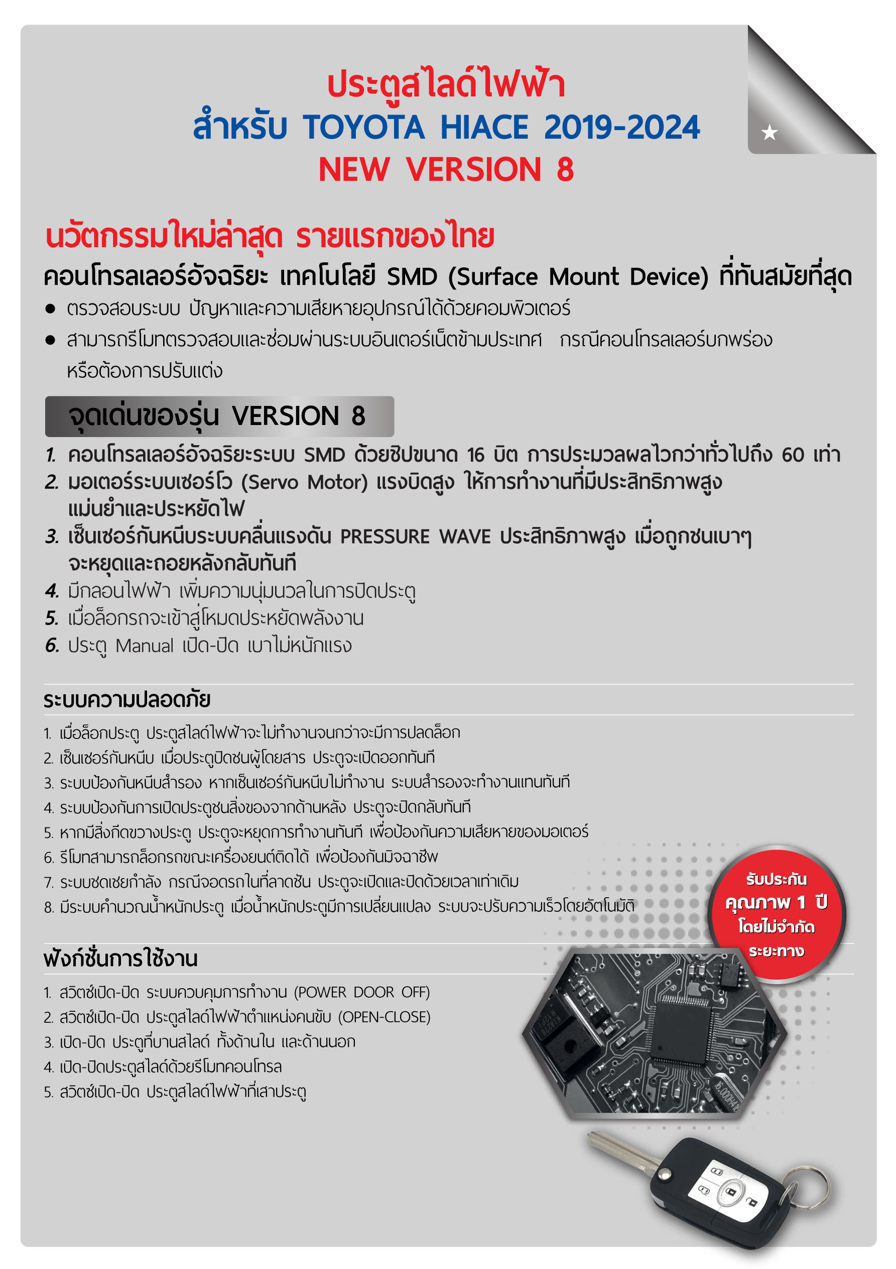 ประตูสไลด์ไฟฟ้า NEW VERSION 8 สำหรับรถตู้ TOYOTA HIACE 2019-2024
